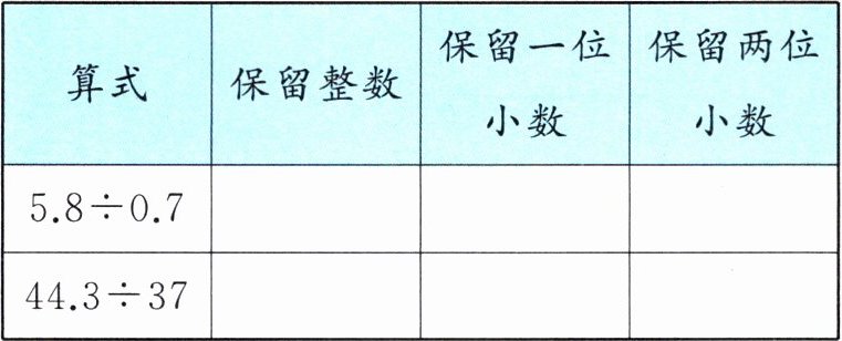 1. 求商的近似数时,先计算到比要保留的小数位数多