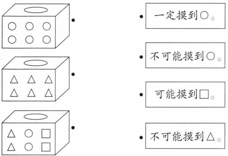 5. 从盒子里摸出一个物体,结果会是什么?连一连。