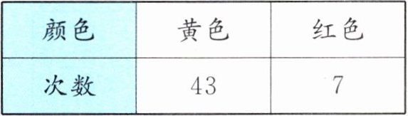 3. 盒子里有黄、红两种颜色的球,兰兰摸了50次(摸出1个后放回去摇匀再摸),记录的结果如下表。根据表格,判断对错。