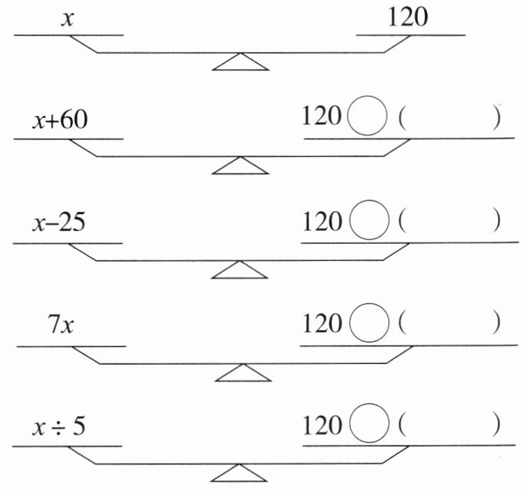 3. 在$◯$里填上适当的运算符号,在括号里填上适当的数,使天平平衡。