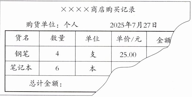 (1) 如果每本笔记本 $x$ 元,那么总计金额是多少元?请用含有字母的式子表示出来。___