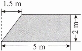 $5-1.5=3.5(m)$ $(3.5+5)×2÷2=8.5(m^2)$ 答:这个花坛占地 $8.5\ m^2$。