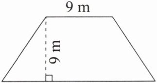 9. 国庆期间,市中心广场东面布置了一个大型的梯形花卉盆景区,整个梯形盆景区占地$135m^2,$这个梯形盆景区的下底是多少米?(列方程解答)