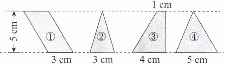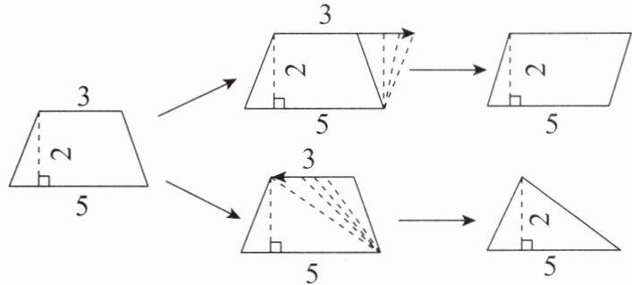 5.找出图形间的关系,用梯形面积公式计算下面平行四边形、三角形的面积。(单位:m)