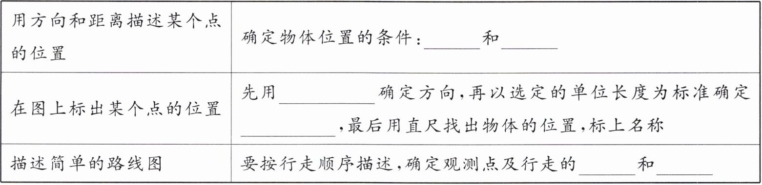 ,最后用直尺找出物体的位置,标上名称||描述简单的路线图|要按行走顺序描述,确定观测点及行走的