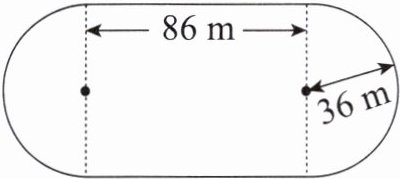$3.14×36^{2}+86×36×2=3.14×1296+3096×2=4069.44+6192=10261.44(m^{2})$ 答:这个运动场的面积是$10261.44\ m^{2}$。