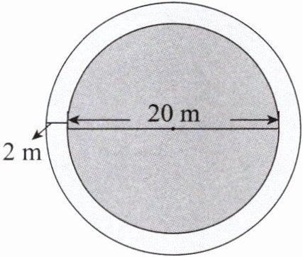 3. 动物园里有一个直径为20m的圆形人工湖,在湖的周围有一条宽为2m的小路,这条小路的面积是多少平方米?