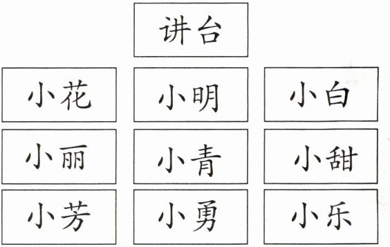 (1)小明的右边是( )。