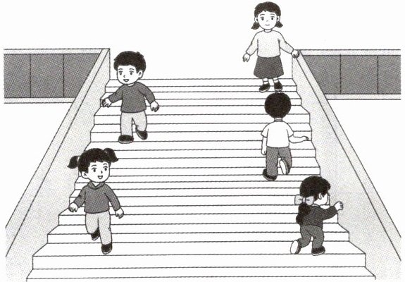 2. 上下楼梯时都应该靠右行,请将下图中走错的小朋友圈出来。