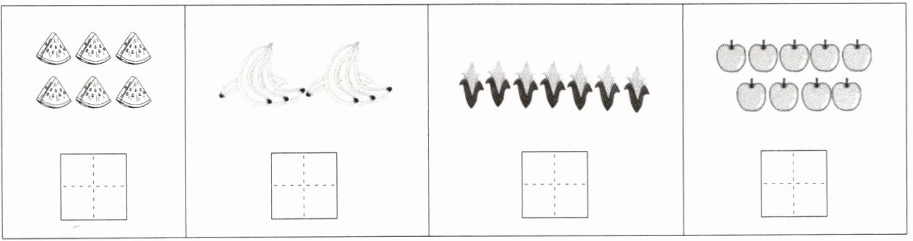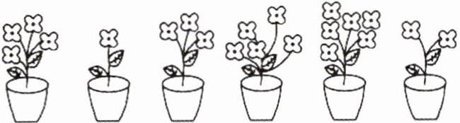 4. 从左往右数,第( )盆开了5朵花,开6朵花的是第( )盆。