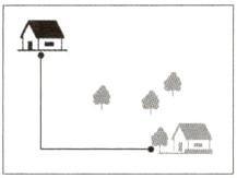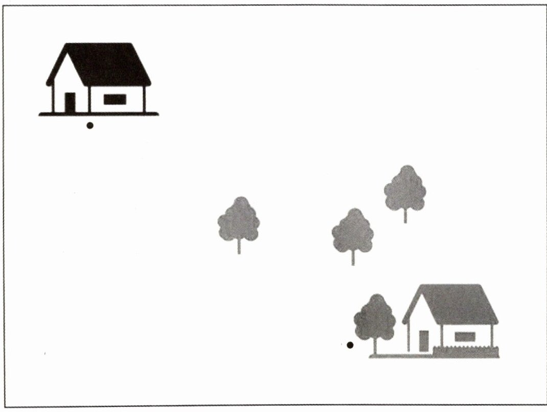 2. 在下面两个房子中间修一条路,把两个房子连起来。