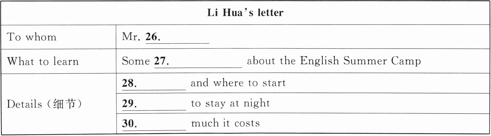 听一篇短文,根据短文内容,填入所缺信息。每空一词。读三遍。