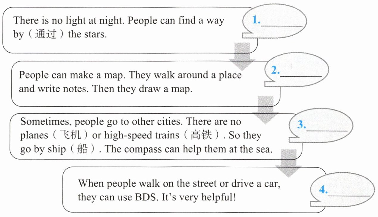 (Zhang Peng 在老师的指导下,收集资料制作了翻翻书“flip book”,向同学们分享从古到今人们是怎样辨别方向的。)阅读 Zhang Peng 的翻翻书,完成下列任务。