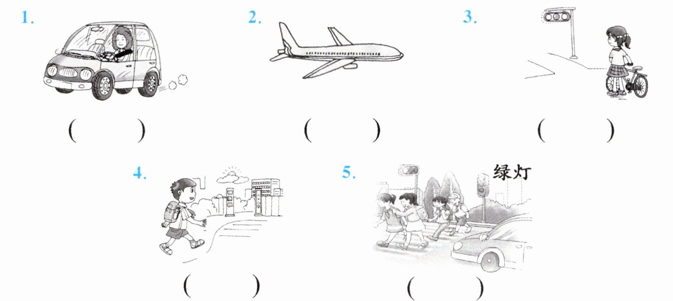 一、读句子,填写正确的交通信号灯,把下列句子补充完整。