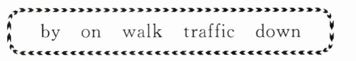 1. walk 2. on 3. down 4. traffic 5. by