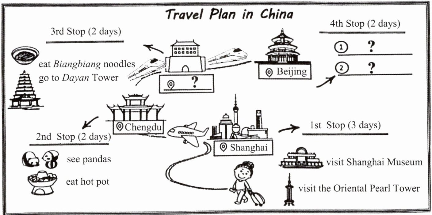 )4. Which city does Emma want to visit at the third stop?A. Shanghai.