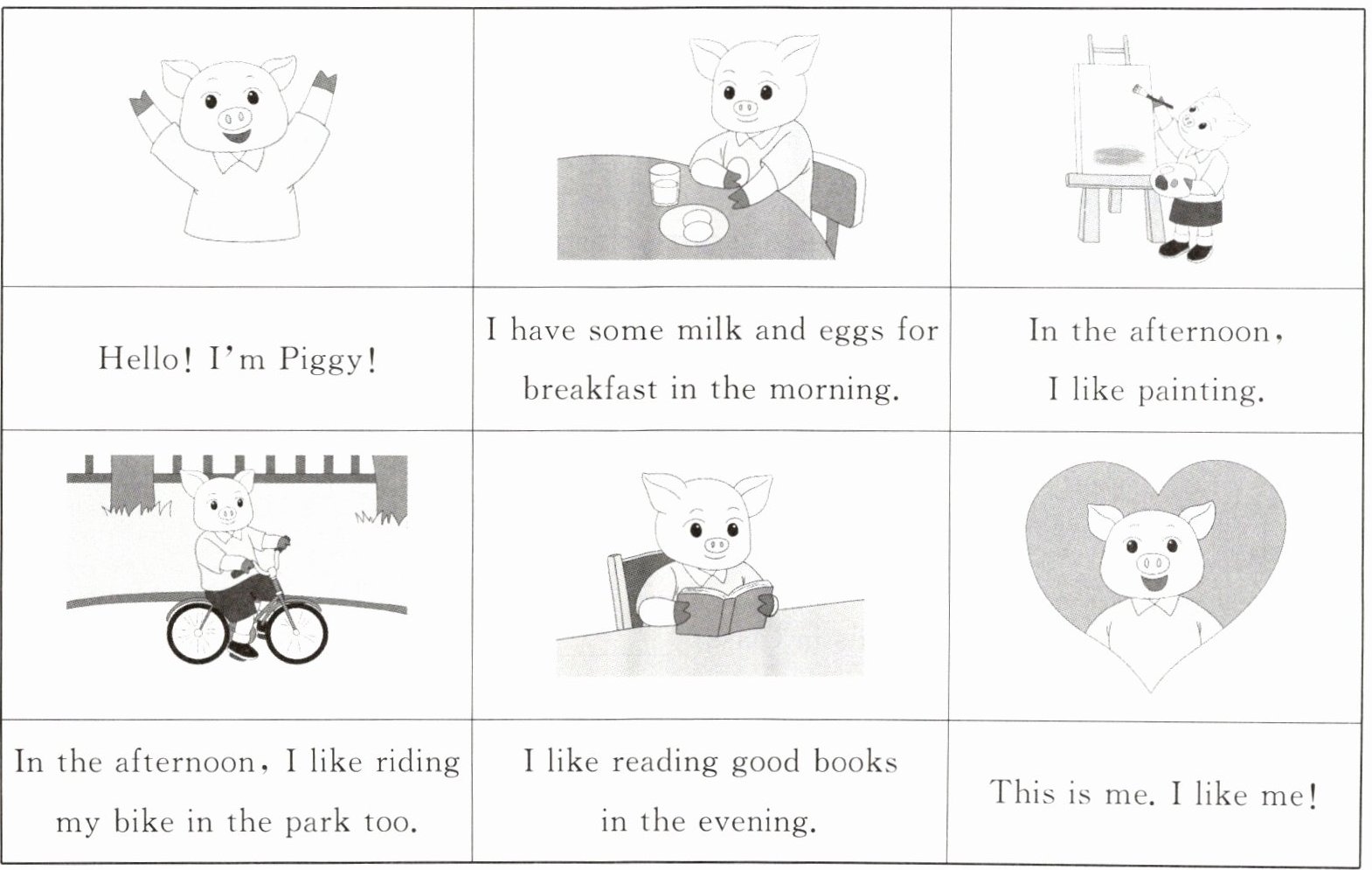 任务三:你喜欢故事里自信的 Piggy 吗? 你是什么样的孩子呢? 请画出你的自画像,从姓名、外貌特征、兴趣爱好等方面介绍一下自信的你吧!