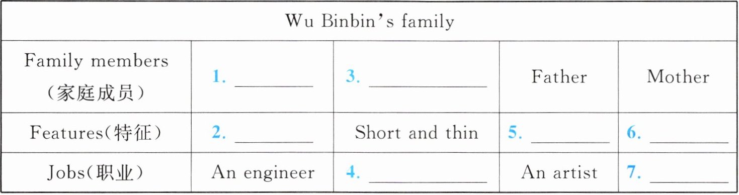 三、(Wu Binbin 拥有一个幸福和美的家,那么他的家人是怎样的呢?)任务型阅读。