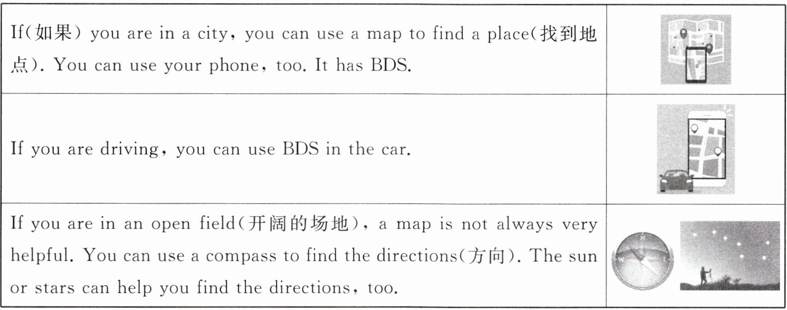 二、(哪些工具可以让你快速找到准确的路线呢?)阅读材料,判断下列句子的正(T)误(F)。