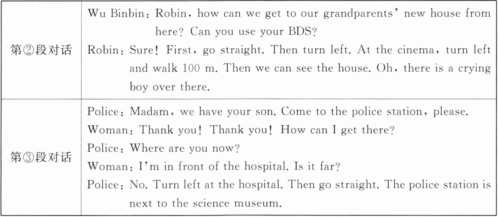 三、(Wu Binbin 和 Robin 在去爷爷奶奶家的途中,偶遇了一个迷路的小男孩,他们是如何帮助小男孩寻找回家的路的呢?)任务型阅读。