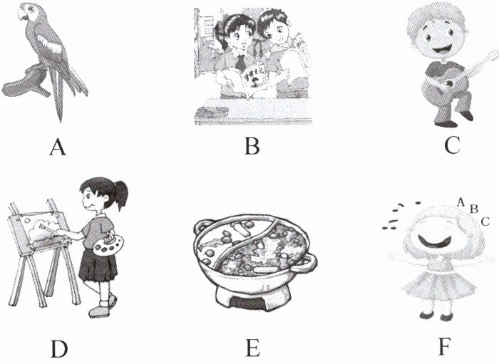 听句子,选出与所听句子内容相符的图片,有一幅图是多余的。读两遍。