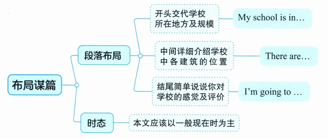 开头交代学校所在地方及规模:My school is in...