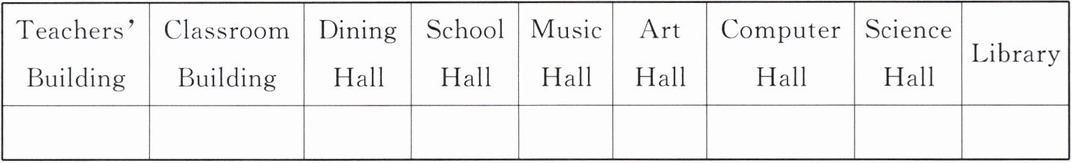 |Teachers’ Building|Classroom Building|Dining Hall|School Hall|Music Hall|Art Hall|Computer Hall|Science Hall|Library|