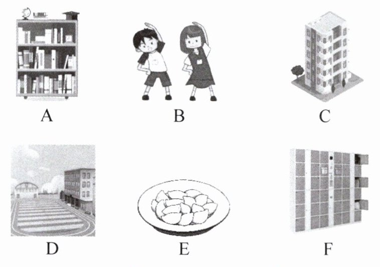 听句子,选出与所听句子内容相符的图片,有一幅图是多余的。读两遍。