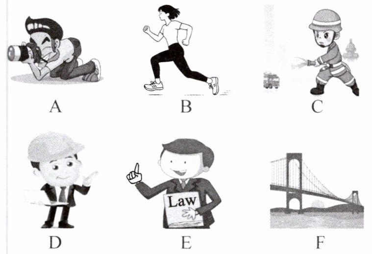 听句子,选出与所听句子内容相符的图片,有一幅图是多余的。读两遍。