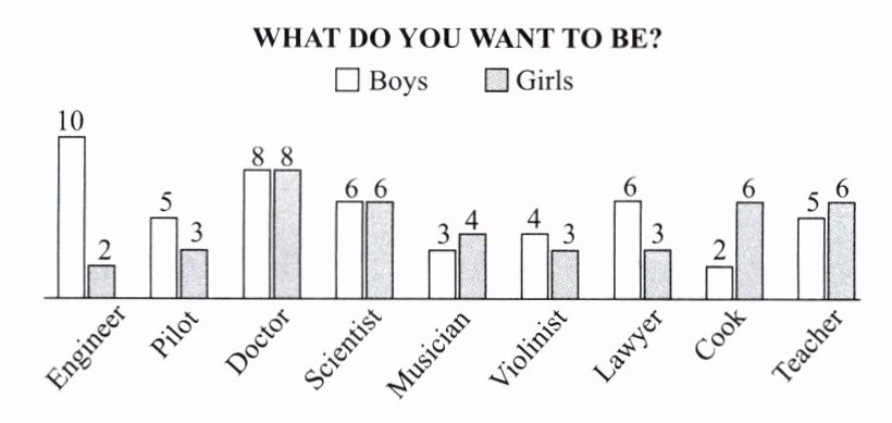 Today our English teacher Mr. Chen asks his ninety students in Class 4 and 7 about what they're going to be when they grow up. Let's have a look at the results in the chart.
