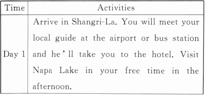 | Day 1 | Arrive in Shangri-La. You will meet your local guide at the airport or bus station and he'll take you to the hotel. Visit Napa Lake in your free time in the afternoon. |