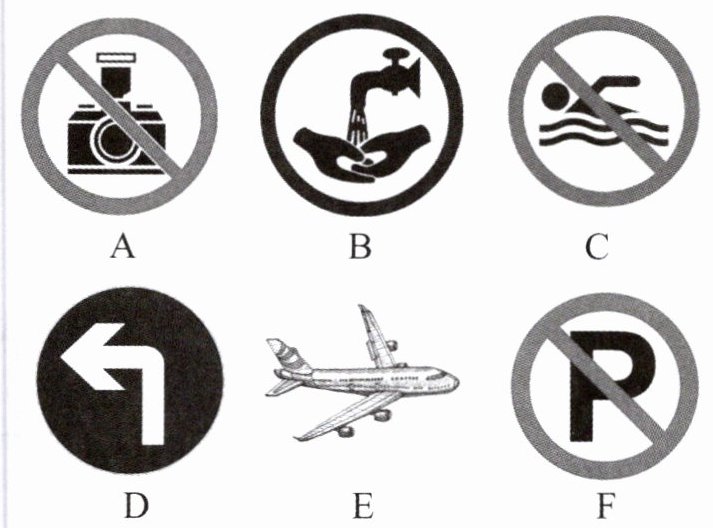 听五个句子,选择与所听句子内容相符的图片,有一幅图是多余的。读两遍。