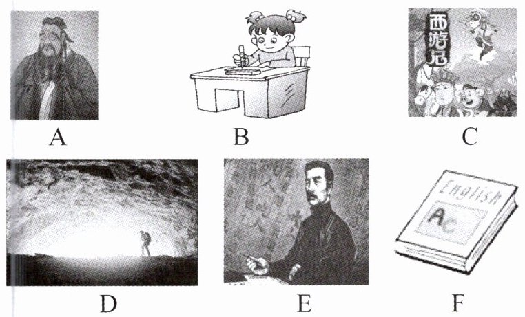 听五个句子,选择与所听句子内容相符的图片,有一幅图是多余的。读两遍。