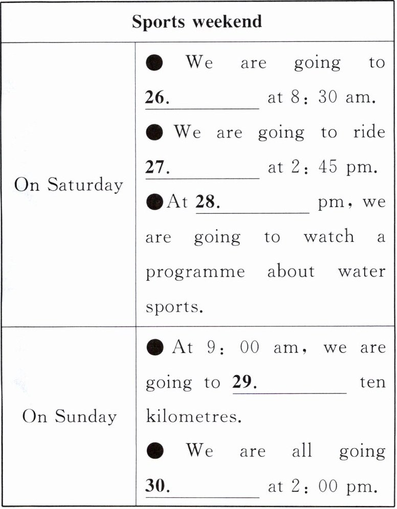 |On Sunday|● At 9:00 am,we are going to ______ ten kilometres. ● We are all going ______ at 2:00 pm.|