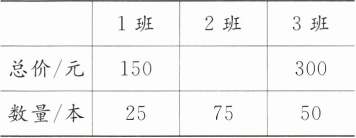 (2) 如果 2 班与 1 班购买的笔记本单价相同,将 2 班应该付的钱数填在表格里。