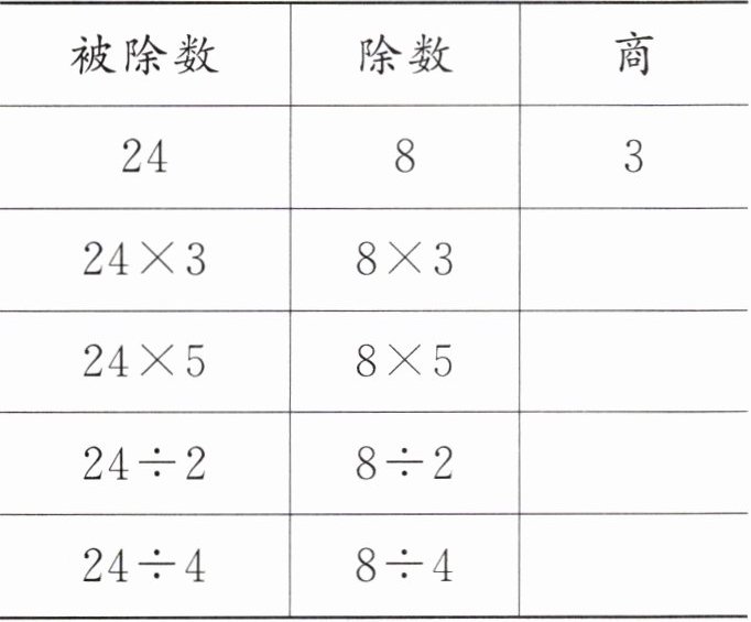 3. (1) 一道除法算式,被除数除以 5,要使商不变,除数也要( )。