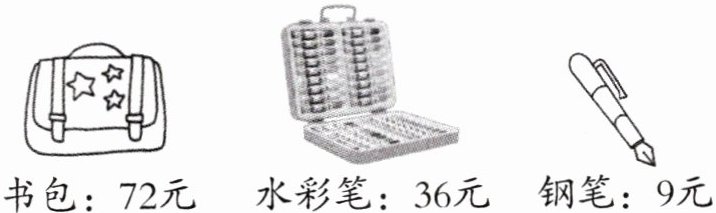 书包:72 元 水彩笔:36 元 钢笔:9 元