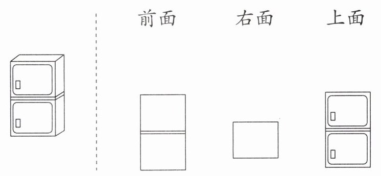 1. 一般情况下,观察一个物体,正对着我们的面是( )面,右侧的面叫作( )面,正上方的面叫作( )面。