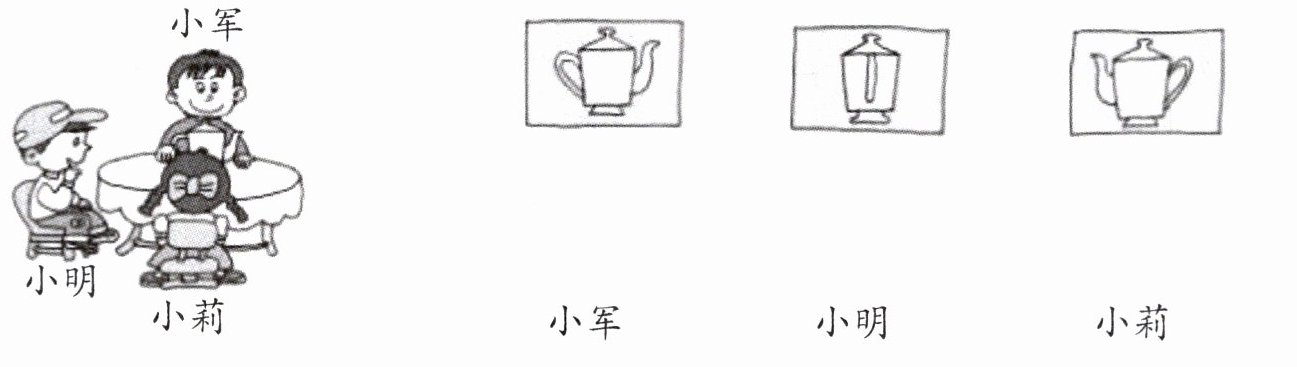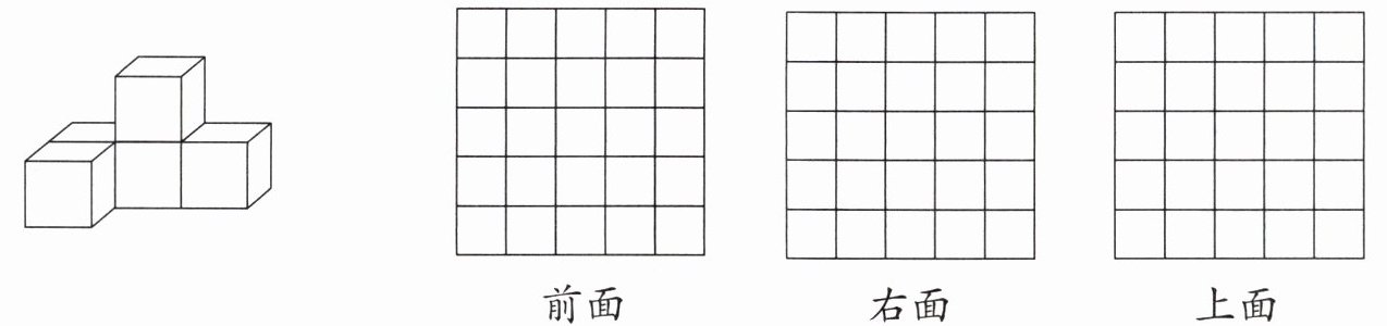 1. 根据要求,给右面的物体添加一个同样的小正方体。