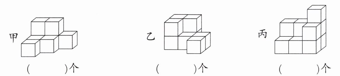 2. 数一数下面的物体各有多少个小正方体,并填在括号里。
