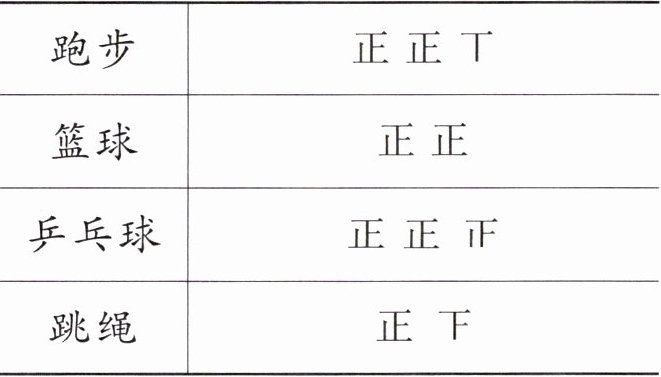 3. 李海调查了四(1)班同学最喜爱的体育运动,调查结果记录如下: