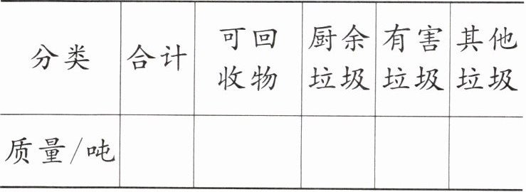 |分类|合计|可回收物|厨余垃圾|有害垃圾|其他垃圾|