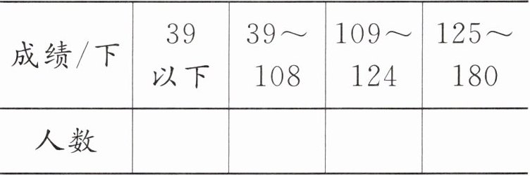 |成绩/下|39以下|39~108|109~124|125~180|