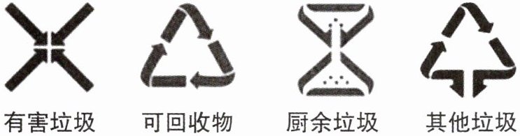2. 垃圾分类的图标如下: