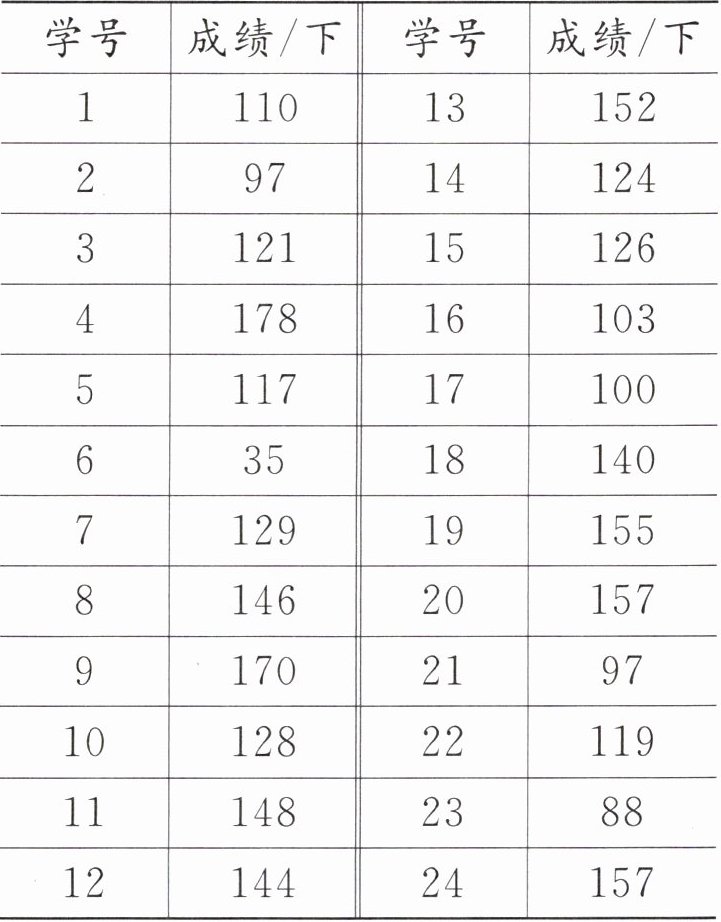 1. 下面是四(1)班女生1分钟跳绳的成绩记录。根据下面的数据进行分段整理,并完成统计表。