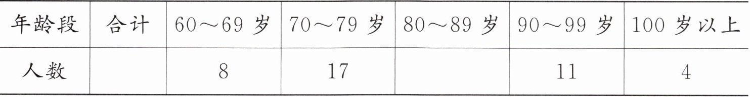 |年龄段|合计|60~69 岁|70~79 岁|80~89 岁|90~99 岁|100 岁以上|