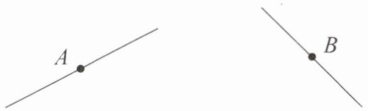 4. 经过直线上的点A和点B分别画出已知直线的垂线。