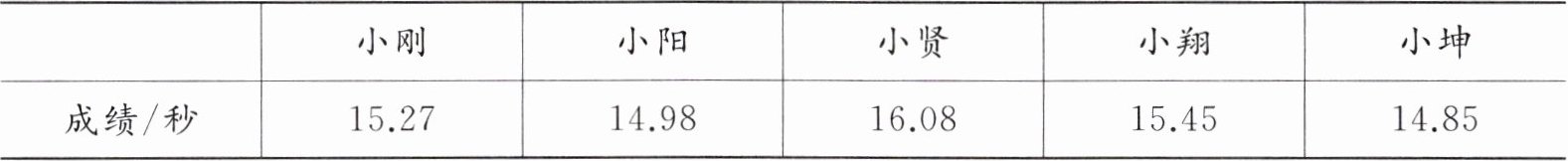 2. 学校运动会上,高年级组有五人进入男子 100 米决赛。他们决赛时的成绩如下表。
