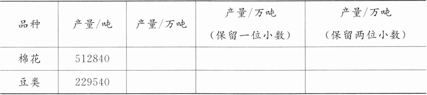 下面是 2023 年某地棉花和豆类产量。先改写成用“万”作单位的数,再按要求写出近似数。
