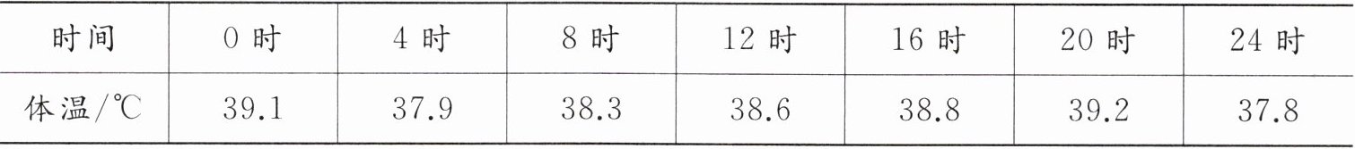 |体温/℃|39.1|37.9|38.3|38.6|38.8|39.2|37.8|
